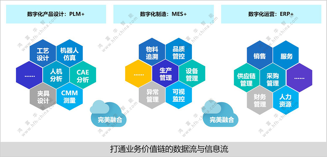 企業通過借助MES系統結合ERP系統、PLM系統,快速建立起企業的全業務價值鏈數字化運營管理體系,通過MES,實現生產、設備、質量的數字化可視化管理,結合ERP、PLM等,建立起產品開發、營銷、銷售、物流和生產的端到端管理體系。